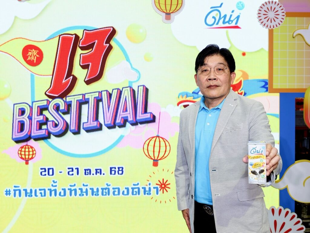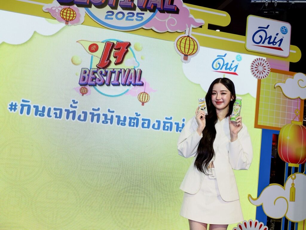 คุณจิตรภณ ไตรรัตน์วรวุฒิ ผู้จัดการฝ่ายการตลาดกลุ่มผลิตภัณฑ์นมถั่วเหลืองดีน่า บริษัท แดรี่พลัส จำกัด ในกลุ่มบริษัทดัชมิลล์ ให้สัมภาษณ์เพิ่มเติมว่า “ผลิตภัณฑ์ดีน่า ของเราเป็นผลิตภัณฑ์นมถั่วเหลืองผสมธัญพืช ในฐานะที่เราเป็นผลิตภัณฑ์เจในทุกๆ สูตร อีกทั้งยังเป็นผลิตภัณฑ์ที่ได้รับการการันตี สินค้าทางเลือกเพื่อสุขภาพ เราจึงให้ความสำคัญกับเทศกาลการกินเจ เป็นประจำในทุกๆ ปี ซึ่งในปีนี้เราก็ได้สนับสนุนเทศกาลกินเจในหลากหลายพื้นที่ทั่วประเทศและหนึ่งในนั้นคืองานวันนี้กับกิจกรรม เจ BESTIVAL 2025 กินเจทั้งทีมันต้องดีน่า ภายในงานรวมไลฟ์สไตล์การกินเจมาให้ครบครัน ทั้งบูธอาหารเจ เมนูอาหารเจจากนมถั่วเหลืองดีน่า การคอลแลปกับแบรนด์อื่นๆ ที่รังสรรค์เมนูเจตลอดเทศกาลเจปีนี้ อีกทั้งเอาใจสายมูด้วยการสักการะเทพเจ้า และซุ้มดูดวงจากสมาคมโหรแห่งประเทศไทยฯ และโปรโมชั่นพิเศษภายในงาน ซื้อนมถั่วเหลืองดีน่า ก็จะได้เล่นกิจกรรมเพื่อรับของรางวัลมากมาย นอกจากนี้ยังเอาใจสายเอ็นเตอร์เทนด้วยโชว์พิเศษจากศิลปินทั้งสองวัน กับ วงPROXIE และ จูเนียร์ มาร์ค จาก GMM ที่มาสร้างความสนุกสนาน และความบันเทิงภายในงาน