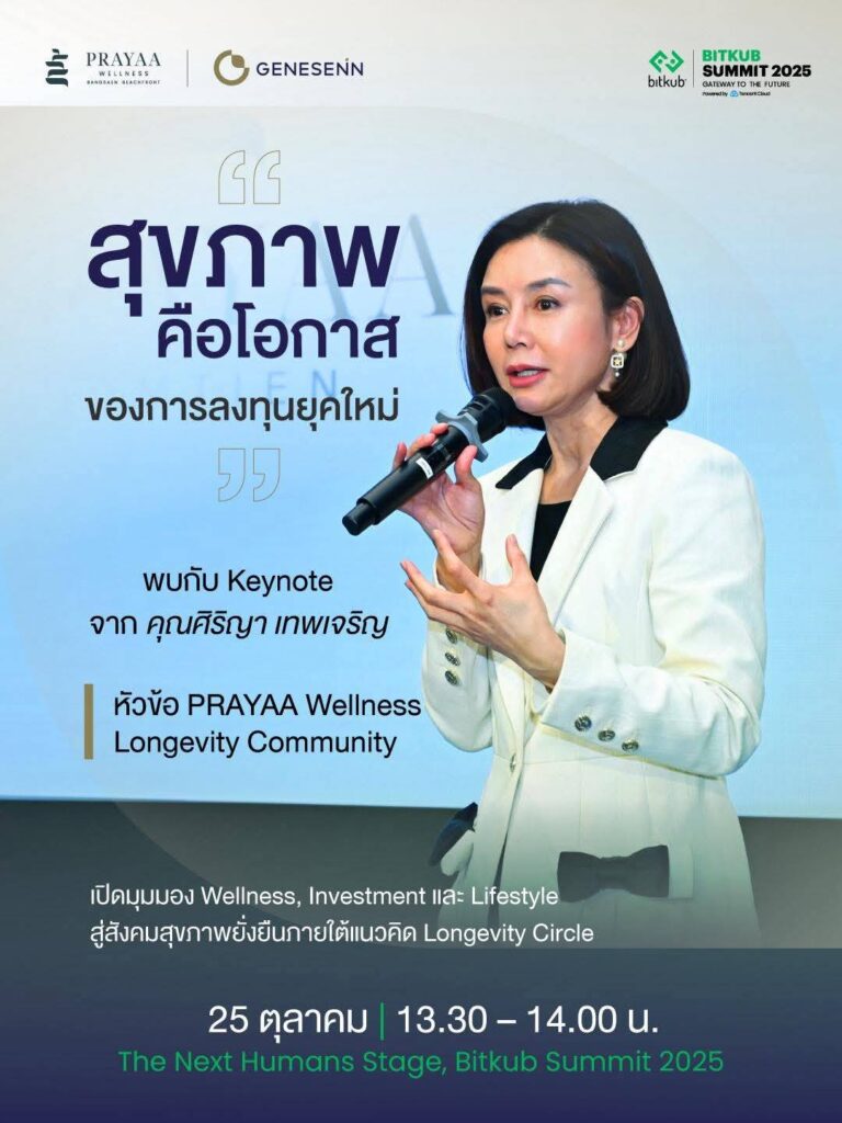 กรุงเทพฯ — 23 ตุลาคม 2568 — เตรียมพบกับการลงทุนที่ผสานความมั่งคั่งและสุขภาพอย่างลงตัว! โครงการ “พระยาบางแสน” (Prayaa Bangsaen Wellness Seaside Residence) สร้างปรากฏการณ์เปิดตัวอย่างเป็นทางการครั้งแรกในงาน Bitkub Summit 2025 ภายใต้แนวคิดปฏิวัติวงการ “Wellness & Investment by the Sea”