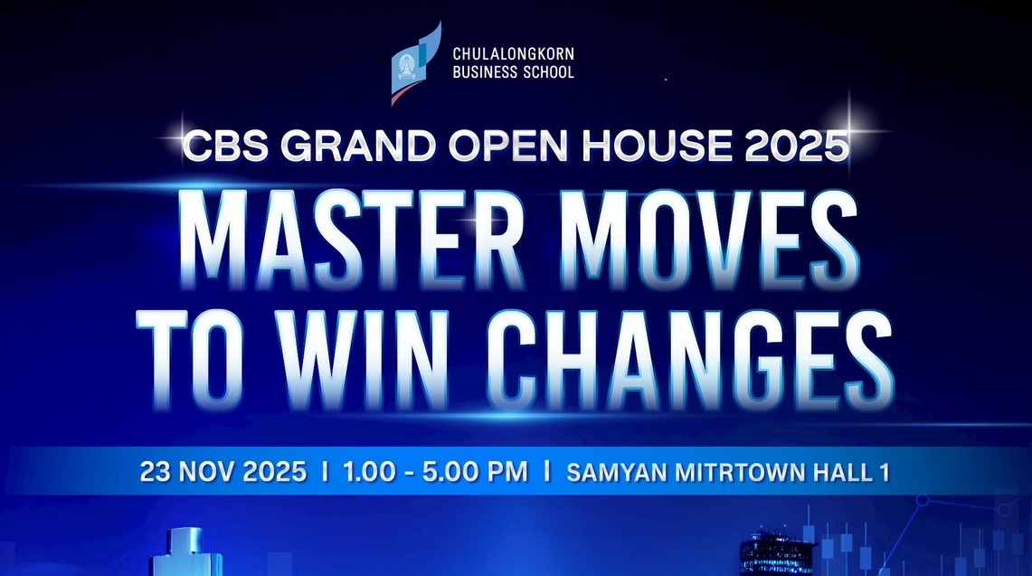 ในยุคที่โลกธุรกิจเปลี่ยนแปลงรวดเร็วจากเทคโนโลยีและข้อมูล จุฬาลงกรณ์มหาวิทยาลัย โดย คณะพาณิชยศาสตร์และการบัญชี (Chulalongkorn Business School: CBS) ตอกย้ำบทบาท “ผู้นำด้านการศึกษาธุรกิจของไทย” ด้วยการจัดงาน “CBS Grand Open House 2025” เปิดบ้านแนะนำหลักสูตรใหม่และแนวคิดการเรียนรู้ที่เน้น “คิดเชิงกลยุทธ์ ลงมือทำจริง และเปลี่ยนแปลงได้จริง” งานจัดขึ้นในวัน อาทิตย์ที่ 23 พฤศจิกายน 2568 ณ สามย่านมิตรทาวน์ ฮอลล์ 1