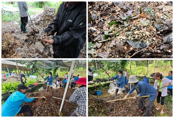 ภาพการทำวัสดุปรุงดินจากเศษวัสดุเหลือใช้ทางการเกษตร กลุ่มดอกไม้อารมณ์ดีบ้านนางแลใน ต.นางแล อ.เมือง จ.เชียงราย