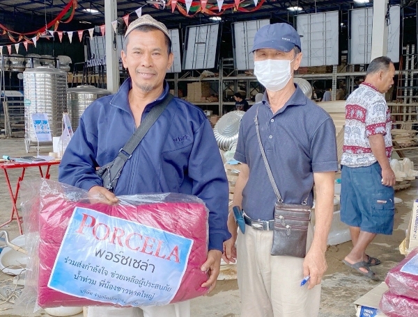 On this occasion, PORCELA received strong support from key dealer partners in Songkhla Province, including Mr. Nopadon Tangkhehanam, Executive of Hatyai Klungpoon Ceramic & Sanitary Ware Co., Ltd., and Mr. Durong Changsirivathanathamrong, Executive of Cornerstone Construction Co., Ltd. Their collaboration played an important role in ensuring that assistance was distributed efficiently and reached those in need comprehensively.