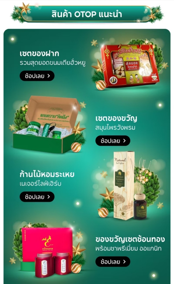 อะเมซิ่ง ของกินของใช้ ของดีทั่วไทย” ซึ่งเป็นความร่วมมือกับ Shopee แพลตฟอร์มอีคอมเมิร์ซชั้นนำ เพื่อจัดทำแคมเปญต่อเนื่องเป็นเวลา 6 เดือน (กรกฎาคม–ธันวาคม 2568) ภายใต้แนวคิด “OTOP Amazing: 6 Festivals of Magic ช้อปสะบัดทุกเดือน โปรสะเทือนทุกวัน” โดยแคมเปญประจำเดือนธันวาคมถูกออกแบบให้สอดรับกับบรรยากาศเทศกาลคริสต์มาสและปีใหม่ ซึ่งเป็นช่วงเวลาพิเศษที่ประชาชนนิยมซื้อของขวัญและของฝากเพื่อมอบให้แก่กัน