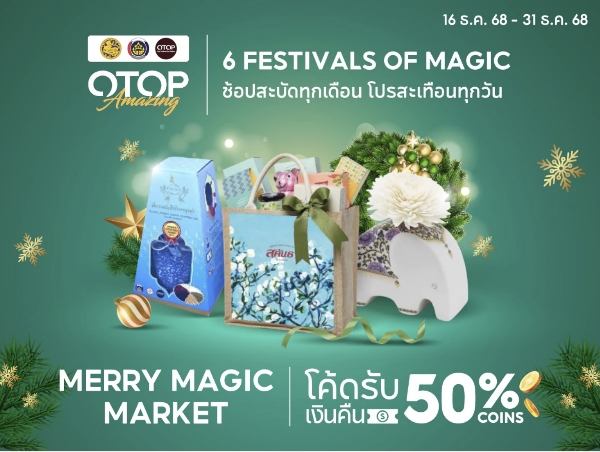 พช. ชวนช้อปโอทอปออนไลน์ “Merry Magic Market – โปรของขวัญ ส่งสุขทั่วไทย ใจฟูทุกบ้าน” มหกรรมส่งความสุขตลอดเดือนธันวาคม 2568