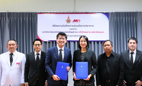 เครือโรงพยาบาลสัตว์เมืองเอก โดย บริษัท เวทแคร์ พาร์ทเนอร์ส จำกัด นำโดย นายไลโอเนล โซห์ วี ฉัว (ที่ 3 จากซ้าย) ประธานกรรมการบริษัท และนายศรายุธ อัสสมกร (ที่ 2 จากซ้าย) ประธานเจ้าหน้าที่บริหาร พร้อมด้วย ผศ.ดร.ลลิตา ศิริวัฒนานนท์ (ที่ 4 จากซ้าย) คณบดีคณะเทคโนโลยีการเกษตร และ ผศ.น.สพ.การันต์ ชีพนุรัตน์ (ที่ 5 จากซ้าย) ประธานหลักสูตรสาขาการพยาบาลสัตว์ มหาวิทยาลัยเทคโนโลยีราชมงคลธัญบุรี ลงนามบันทึกความเข้าใจข้อตกลงความร่วมมือทางวิชาการ โดยมีวัตถุประสงค์ที่มุ่งเน้นสนับสนุนการศึกษาทั้งภาคทฤษฎีและภาคปฏิบัติด้านการพยาบาลสัตว์ การฝึกประสบการณ์วิชาชีพในรูปแบบสหกิจศึกษา เพื่อให้นักศึกษาได้มีโอกาสนำเอาความรู้ทางวิชาชีพการพยาบาลสัตว์ที่ได้จากการเรียนการศึกษามาใช้ในทางปฏิบัติผ่านการฝึกงาน ณ สถานที่ประกอบการจริง ด้านกระบวนการพยาบาลสัตว์ การสนับสนุนด้านการรักษา การผ่าตัด ตลอดจนการใช้เทคโนโลยีวินิจฉัยโรค ภายใต้การดูแลของทีมสัตวแพทย์ผู้มีประสบการณ์ของเครือโรงพยาบาลสัตว์เมืองเอก พร้อมทั้งส่งเสริมในการร่วมพัฒนาบุคลากรสาขาอาชีพที่เกี่ยวข้องให้มีคุณภาพ มาตรฐาน และสอดคล้องกับความต้องการของสถานประกอบการในปัจจุบัน เพื่อต่อยอดสู่การพัฒนาและยกระดับวิชาชีพนักการพยาบาลสัตว์ที่มีคุณภาพให้แก่วิชาชีพการพยาบาลสัตว์