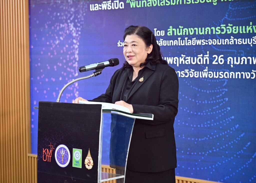 วันที่ 26 กุมภาพันธ์ 2569 สำนักงานการวิจัยแห่งชาติ(วช.) กระทรวงการอุดมศึกษา วิทยาศาสตร์ วิจัยและนวัตกรรม จัดการแถลงข่าวการส่งมอบของขวัญปีใหม่ อว. 2569 กระทรวงการอุดมศึกษา วิทยาศาสตร์ วิจัยและนวัตกรรม นวัตกรรมเตาไบโอชาร์ พลังงานชุมชน BioCycle Kiln โดย ดร.วิภารัตน์ ดีอ่อง ผู้อำนวยการสำนักงานการวิจัยแห่งชาติ เป็นประธานในพิธีเปิด พร้อมด้วย รองศาสตราจารย์ ดร.อนรรฆ ขันธะชวนะ มหาวิทยาลัยเทคโนโลยีพระจอมเกล้าธนบุรี หัวหน้าโครงการวิจัย กล่าวรายงานการพัฒนานวัตกรรม ณ ศูนย์ส่งเสริมการวิจัยเพื่อมรดกทางวัฒนธรรม วช.