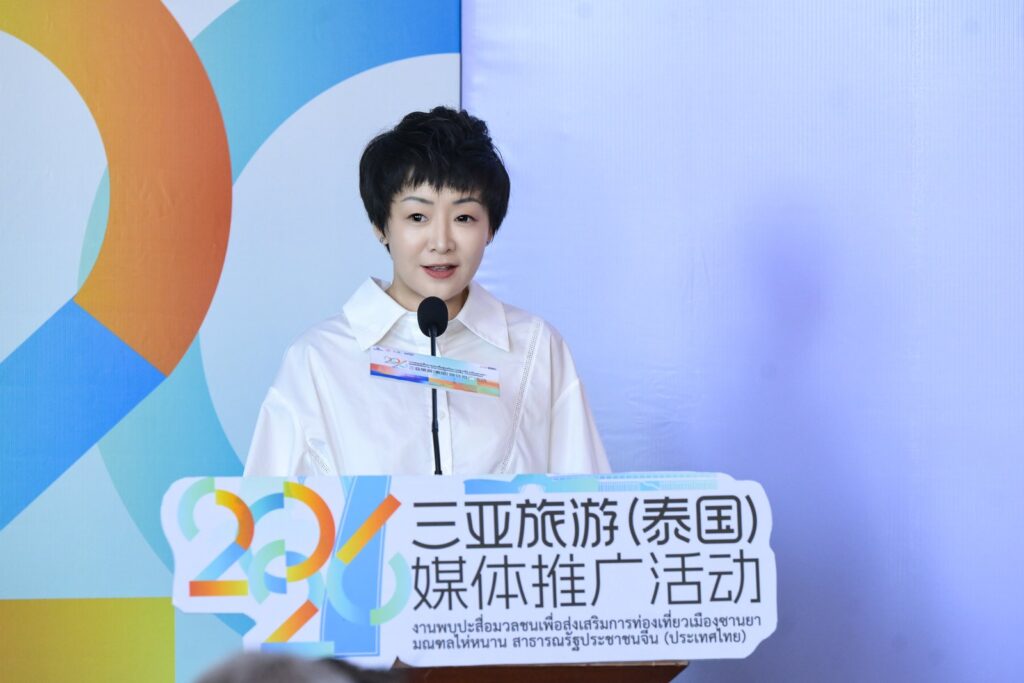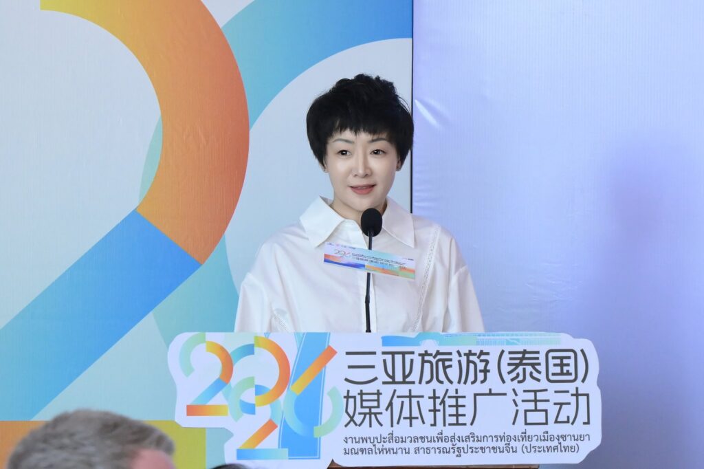 นางหม่า หนาน รองผู้อำนวยการสำนักงานส่งเสริมและพัฒนาการท่องเที่ยวเมืองซานย่า ได้บรรยายและนำเสนอข้อมูลการท่องเที่ยวเป็นพิเศษ โดยแนะนำอย่างละเอียดถึงจุดเด่นด้านทรัพยากรการท่องเที่ยวของซานย่า กลยุทธ์การตลาดในต่างประเทศ และทิศทางความร่วมมือสำคัญ พร้อมเชิญชวนภาคธุรกิจการท่องเที่ยวของไทยเข้าร่วมความร่วมมือในระดับที่ลึกซึ้งยิ่งขึ้น