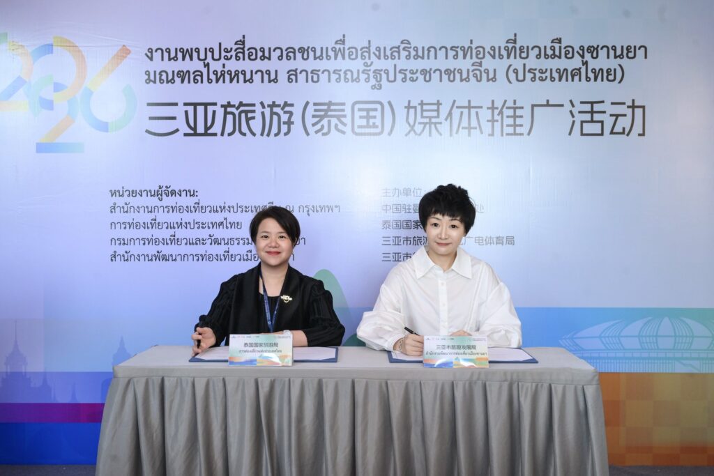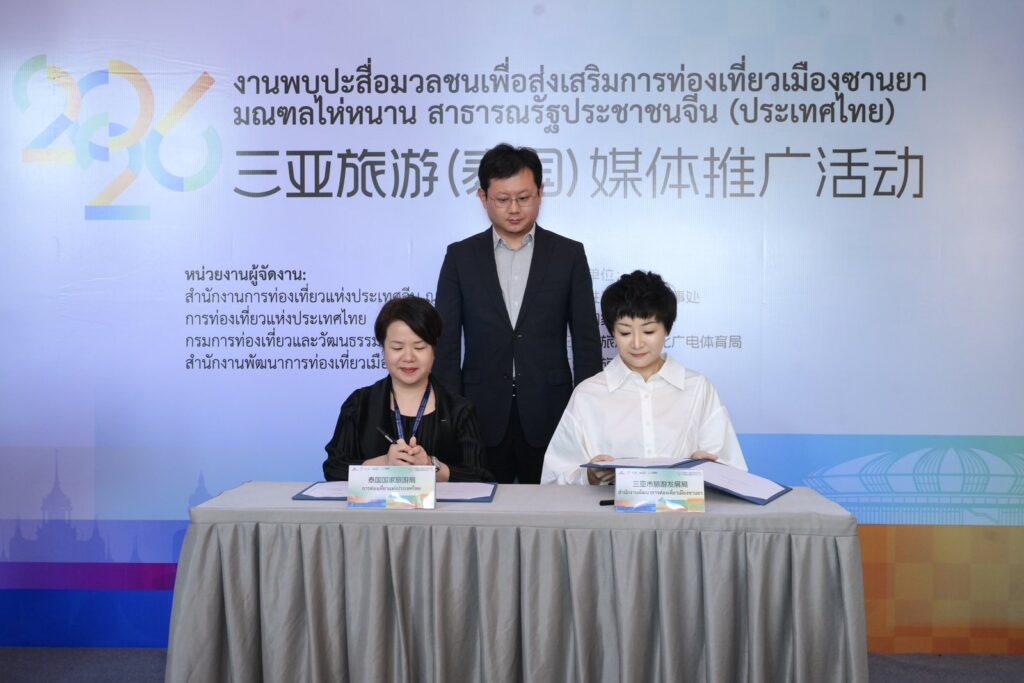 ภายในงาน สำนักงานส่งเสริมและพัฒนาการท่องเที่ยวเมืองซานย่าและการท่องเที่ยวแห่งประเทศไทยได้ลงนามในหนังสือแสดงเจตจำนงความร่วมมือ (LOI) อย่างเป็นทางการ โดยนางสิริเกศอนงค์ ไตรรัตนทรงพล ผู้อำนวยการภูมิภาคเอเชียตะวันออก การท่องเที่ยวแห่งประเทศไทย และนางหม่า หนาน รองผู้อำนวยการสำนักงานส่งเสริมและพัฒนาการท่องเที่ยวเมืองซานย่า เป็นผู้แทนลงนามของทั้งสองฝ่าย ขณะที่นายจาง รั่วหยู ผู้รับผิดชอบศูนย์วัฒนธรรมแห่งประเทศจีน ณ กรุงเทพฯ และสำนักงานการท่องเที่ยวแห่งชาติจีนประจำกรุงเทพฯ ทำหน้าที่เป็นสักขีพยานในพิธีลงนาม โดยข้อตกลงดังกล่าวระบุชัดว่าทั้งสองฝ่ายจะกระชับความร่วมมือในด้านการพัฒนาผลิตภัณฑ์การท่องเที่ยว การแลกเปลี่ยนการเยือนของอินฟลูเอนเซอร์ การทำการตลาดร่วมกันของจุดหมายปลายทาง การเพิ่มความถี่เที่ยวบิน ตลอดจนการดึงดูดการแข่งขันและการแสดง เพื่อร่วมกันผลักดันเส้นทางท่องเที่ยวข้ามชาติเรือธง “กรุงเทพฯ–ซานย่า”
