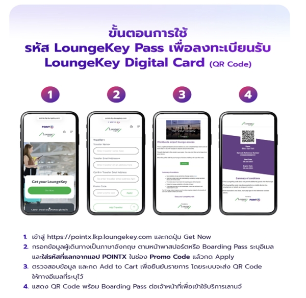 ขั้นตอนการใช้รหัส LoungeKey Pass เพื่อลงทะเบียนรับ LoungeKey Digital Card (QR Code)