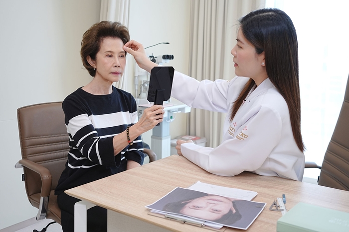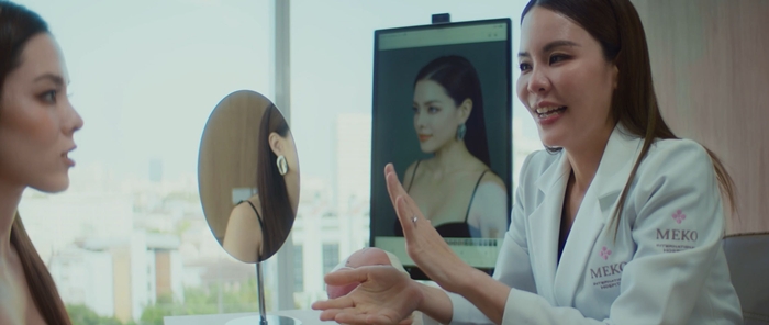 ขณะที่ ดวงดาว จารุจินดา เป็นตัวแทนของแนวคิด Timeless in Beauty and Care หรือความงามที่ยั่งยืนในระยะยาว สะท้อนกลุ่มลูกค้าที่ต้องการผลลัพธ์ที่สอดคล้องกับการใช้ชีวิตในทุกช่วงวัย โดยดวงดาวได้เข้ารับการรักษาศัลยกรรมแก้ไขตาสองชั้นร่วมกับการแก้ไขภาวะกล้ามเนื้อตาอ่อนแรง โดยจักษุแพทย์เฉพาะทางด้าน Oculoplastic (Oculoplastic and Reconstructive Surgery) เพื่อฟื้นฟูการทำงานของดวงตาและเสริมความสดใสอย่างเป็นธรรมชาติ ควบคู่กับการดูแลผิวพรรณแบบองค์รวมอย่างต่อเนื่อง ซึ่งการผสานตัวแทนทั้ง 2 เจเนอเรชัน จึงช่วยตอกย้ำว่า Meko สามารถตอบโจทย์ความงามได้ “ในทุกช่วงวัย และทุกตัวตน”