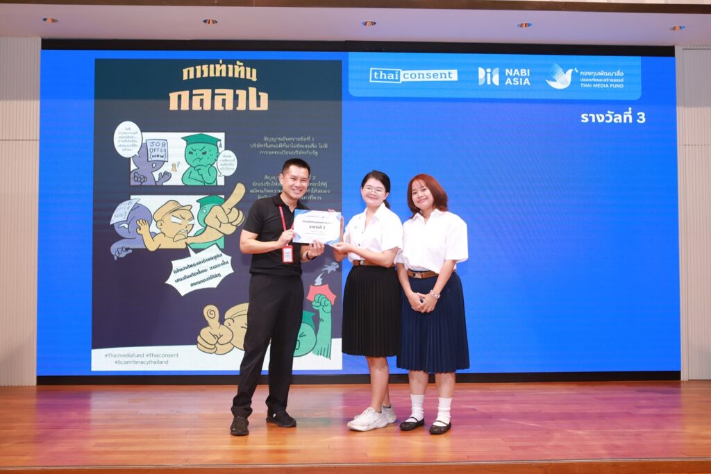 (7 เมษายน 2569) งานเปิดตัวโครงการ ‘Scam Literacy Thailand’ ผลงานผู้รับทุน บริษัท ไทยคอนเซนท์ จำกัด และดำเนินงานร่วมกับ Nabi Asia ในฐานะพันธมิตรด้านวิชาการ ภายใต้การสนับสนุนจากกองทุนพัฒนาสื่อปลอดภัยและสร้างสรรค์ โดยนำความเชี่ยวชาญด้านแนวทางเชิงจิตวิทยามาประยุกต์ใช้ และร่วมมือกับจิตแพทย์เพื่อนำข้อมูลเชิงพฤติกรรมมาสนับสนุนการป้องกันการหลอกลวง ณ โรงแรมเลอเมอริเดียน กรุงเทพมหานคร