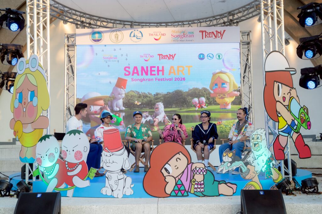 พิธีเปิดงาน “Saneh Art by Songkran Festival 2026” ณ สวนลุมพินี (ลานบันเทิง) ได้รับเกียรติจาก นางสาวฐาปนีย์ เกียรติไพบูลย์ ผู้ว่าการ ททท., นายชัชชาติ สิทธิพันธุ์ ผู้ว่าราชการกรุงเทพมหานคร, นายณรงค์ เรืองศรี ปลัดกรุงเทพมหานคร, นายณัฐ ครุฑสูตร รองผู้ว่าการด้านสินค้าและธุรกิจท่องเที่ยว ททท. ตลอดจนพันธมิตรภาคส่วนต่าง ๆ ร่วมเปิดงานอย่างเป็นทางการ พร้อมกันนี้ยังมีการเสวนา โดยเหล่าศิลปินและครีเอเตอร์เจ้าของคาแรกเตอร์ชื่อดัง ได้แก่ นางสาวดอกอ้อ ใจตั้ง ผู้ก่อตั้ง Trendy Gallery, นายวิศุทธิ์ พรนิมิตร เจ้าของคาแรกเตอร์ Mamuang, นายเชิดศักดิ์ เม้ยขันหมาก หรือ 2CHOEY เจ้าของคาแรกเตอร์ “หน้านิ้วมือ”, นายเกษมวิทย์ ชวีวัฒน์ เจ้าของคาแรกเตอร์ POORBOY, นางสาวสิรินาถ ไสประเสริฐ เจ้าของคาแรกเตอร์ TOMATO TWINS และ นางสาวนิสา ศรีคำดี เจ้าของคาแรกเตอร์ Crybaby มาร่วมแลกเปลี่ยนมุมมองและถ่ายทอดแรงบันดาลใจของผลงานภายในงาน